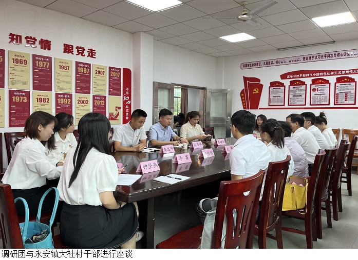 在大社村会议室,调研团与永安镇党委副书记张浩栋等村镇干部围绕基层党建、社区治理、美丽乡村、法治建设等方面进行了深入交流。张浩栋副书记表示,大社村的特色就是用身边人讲好身边事,讲好中国故事,讲好优秀传统文化故事、讲好法治文化故事,通过对象化、通俗化、分众化开展社科普及工作,不断提高群众的文明素养,教育引导群众走正路树正气,培育良好的村风民风,让 社会科学普及工作惠民为民。随后,调研团来到社科普及基地印象园、社科普及长廊、农家书屋、榕树讲堂等地,通过实地走访,详细了解大社村乡村振兴工作的开展情况。王琳教授认为大社村社科长廊建设,榕树讲堂等社科普及方式的做法十分有创意、有成效,能够让村民在潜移默化中受到教育,值得学习和推广。