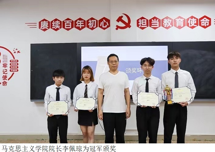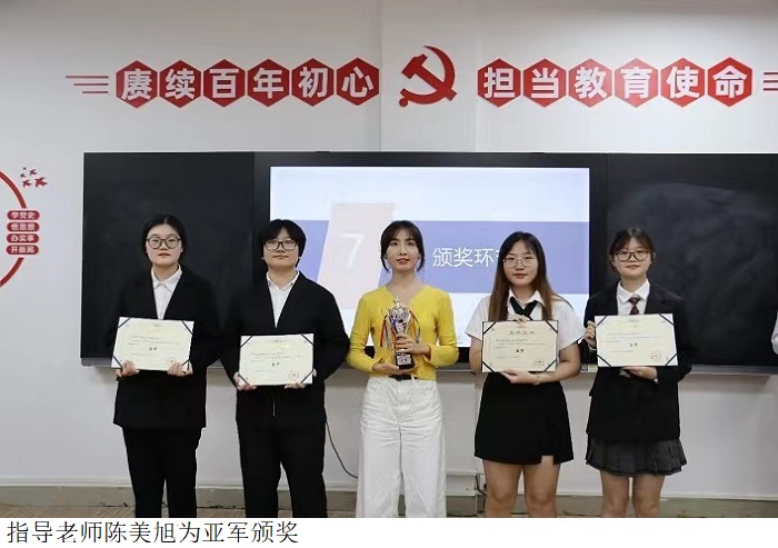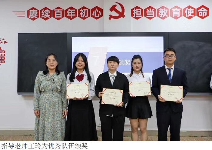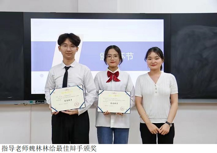 此次比赛的亮点不仅在于辩手们精彩的比拼,还体现在观众答题及评委的点评环节。在严谨的评分标准下,评出了冠、亚、季、优四支获奖队伍及两名最佳辩手。最终,由李佩琼院长、陈美旭老师、庞明明老师、王玲老师、魏林林老师进行颁奖并表示祝贺。