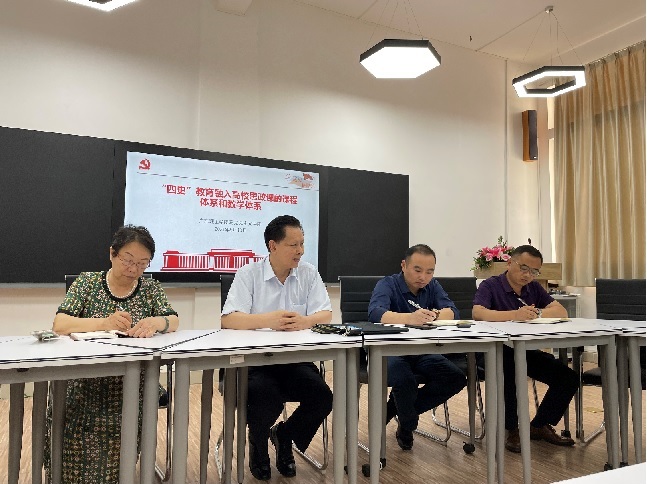 校党委张东生书记在听取报告后,对太阳集团tyc138“四史”学习教育活动的开展情况给予肯定,强调学校、党委高度重视太阳集团tyc138的建设以及思想政治理论的建设。要求太阳集团tyc138落实好教育部等八部门联合印发的《关于加快构建高校思想政治工作体系的意见》,推进“四史”教育融入高校思政课的课程体系和教学体系,办好思政课。