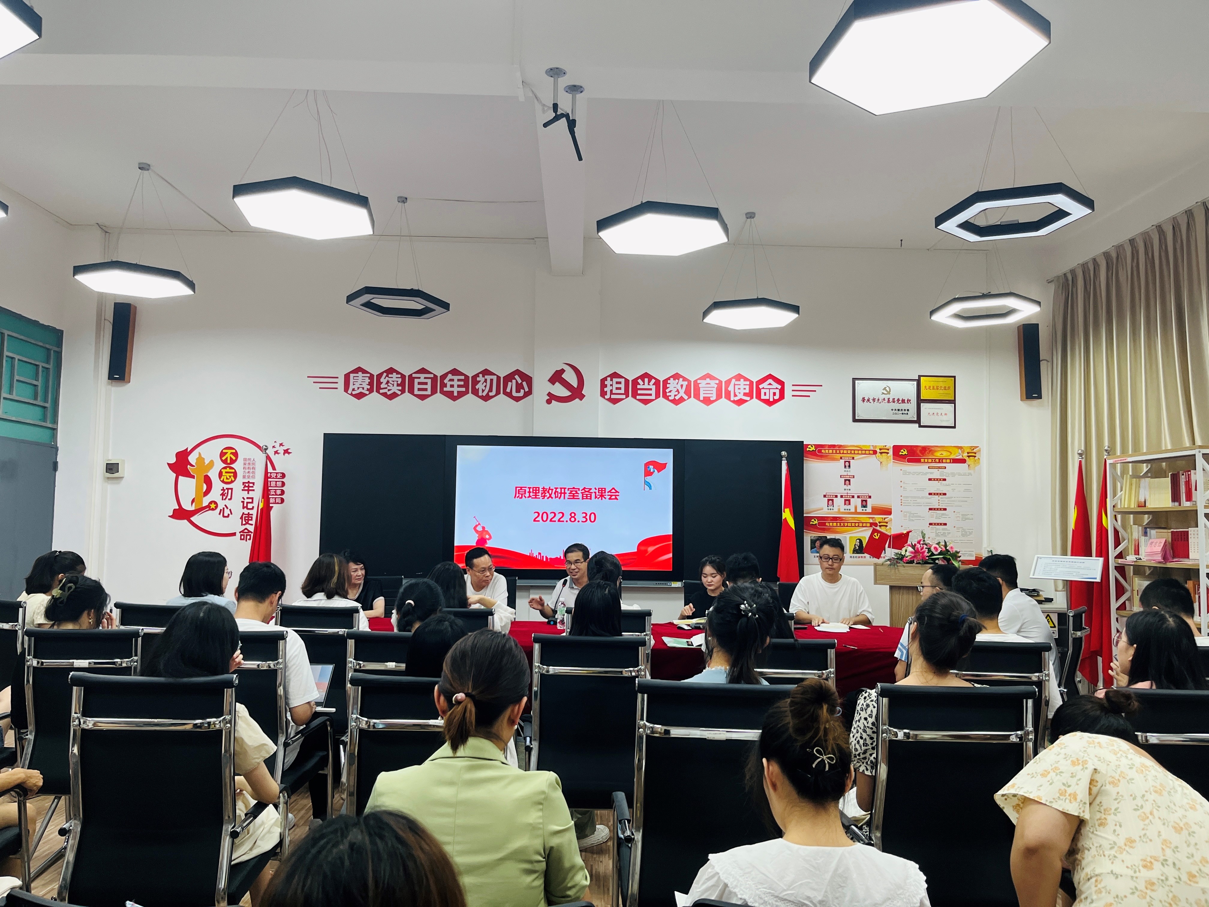 8月30日下午,马克思主义基本原理教研室在7103举行2022-2023年第一学期第一次集体备课会,马克思主义基本原理课程全体教师参加了会议。此次会议由教研室主任赖金茂主持,李佩琼院长、金艳教授出席了备课会并全程参与了讨论。