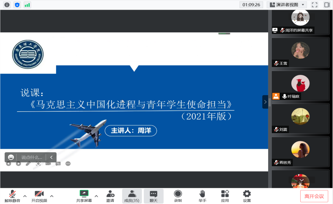 9月6日晚,我院形势与政策教研室以腾讯会议形式召开《马克思主义中国化进程与青年使命担当》课程秋季学期第一次集体备课会。教研室主任叶瑞庭及教研室全体成员参加了会议。