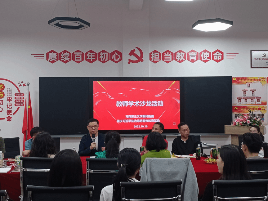 本次师生学术沙龙活动由马院科指委、肇庆习近平法治思想宣传教育基地联合发起,旨在进一步提高学院各位中青年教师的学术科研能力,拓展学术视野,丰富研究视角,激发学术热情,进一步加强师生学术交流以及营造良好学术氛围。