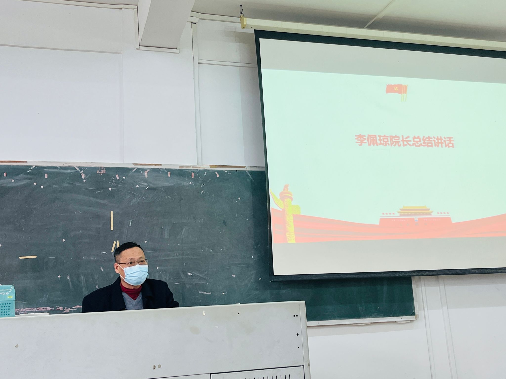 曾中新副院长对本学期学院的工作及取得的成绩进行了总结,对寒假各项工作进行了部署。他强调,教师们在即将到来的期末考试中,要切实执照要求严格改卷,做好期末各项收尾工作。同时,他希望各位教师在假期要加强理论学习,积极参加各种类型学术交流和宣讲,加强师德师风教育和法治安全教育,防止出现历史虚无主义和消极自由主义。同时,要合理利用假期提升教学科研能力,增进教学能力、教学规范,做好新学期的备课工作;教研室主任、支部书记等要切实发挥工作职能,各教研室要积极组织进行集体备课会,党支部要常态化、规范化开展支部活动。