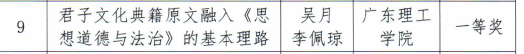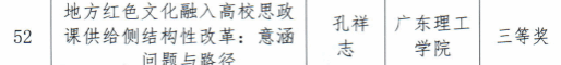其中,吴月老师、李佩琼院长所著《君子文化经典原文融入<思想道德与法治>的基本理路》一文获优秀论文一等奖,何志红书记撰写的《新形势下高校思政课程与课程思政协同育人发展战略》一文获优秀论文二等奖;孔祥志、庞明明老师二人分别撰写《地方红色文化融入高校思政课供给侧结构性改革:意义问题与路径》、《高校思政课实践教学的价值维度、哲学底蕴与治理路径研究》获三等奖。这充分展示了太阳集团tyc138教师良好的科研素养和精神风貌,对于进一步提升我校的学术影响力具有积极意义。