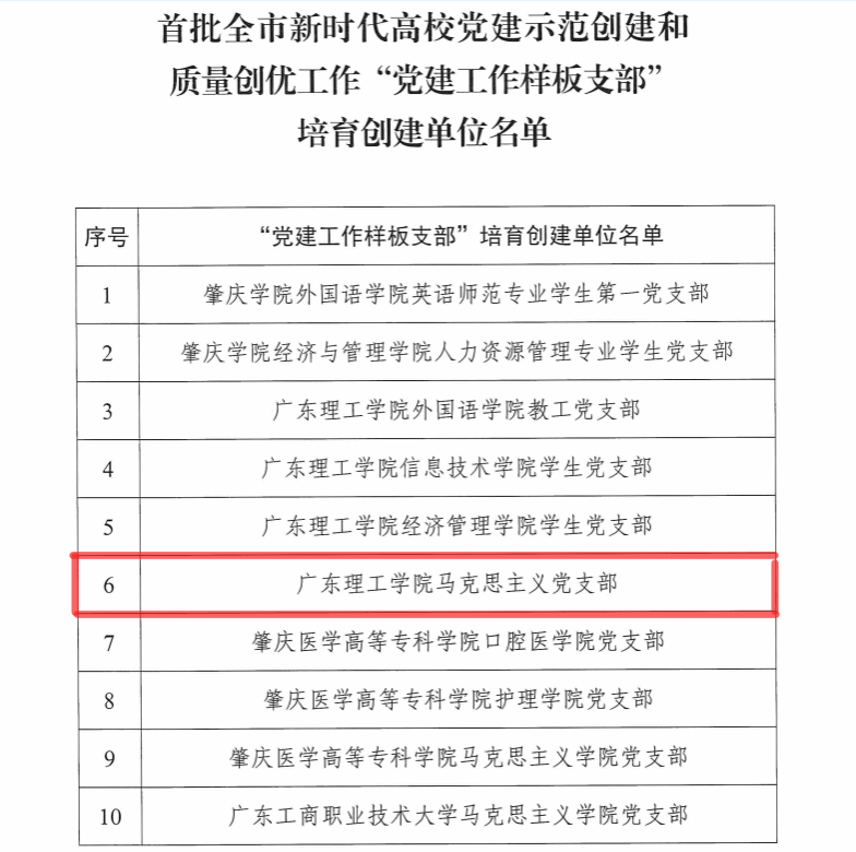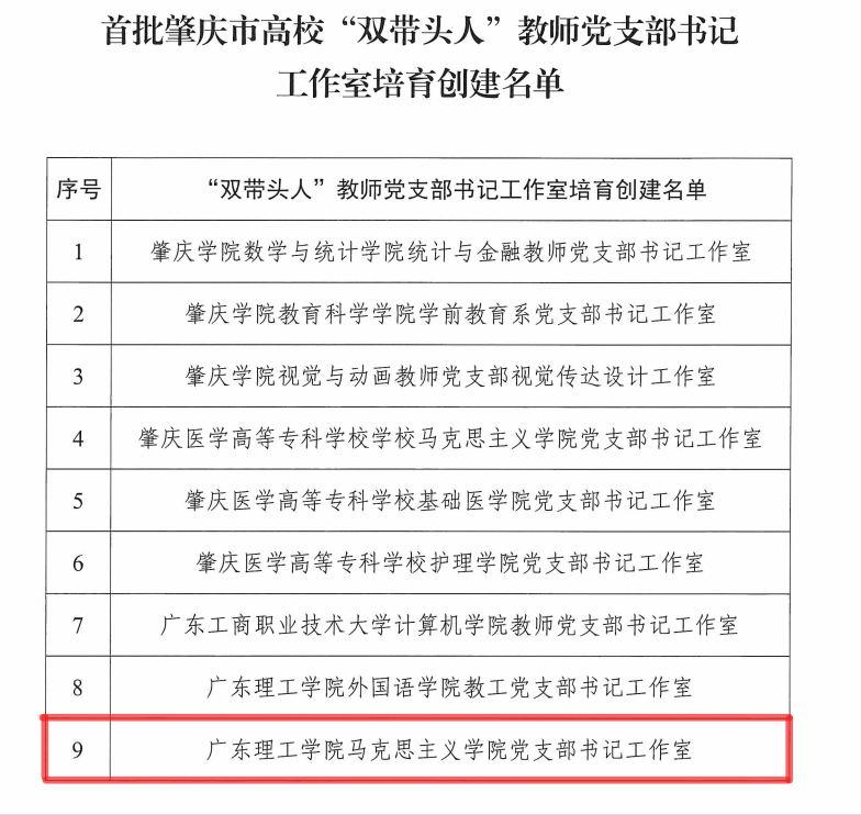 近日,中共肇庆市委教育工委公布了新时代高校党建示范创建和质量创优工作和首批肇庆市高校“双带头人”教师党支部书记工作室培育创建名单。ok138太阳集团古天乐共有5个支部上榜,其中太阳集团tyc138党支部荣登首批肇庆市高校“党建工作样板支部”和“‘双带头人’教师党支部书记工作室”培育创建单位。