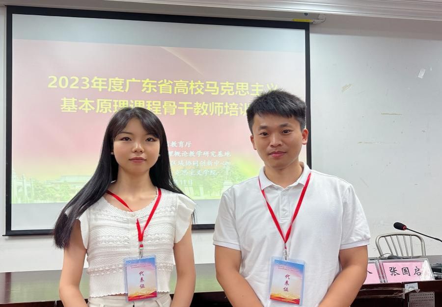 6月11日,2023年度广东省高校马克思主义基本原理课程骨干教师培训班在广州开班。此次培训由广东省教育厅指导,马克思主义基本原理概论教学研究基地、广东省高校思政课区域协同创新中心——华南理工大学承办,来自全省58所高校100余名原理课骨干教师参与培训。为进一步提高我院原理课教师政治素养,提升教学能力,我院精心组织,选派马磊磊,王雪两位青年专任教师参加培训,并顺利结业。