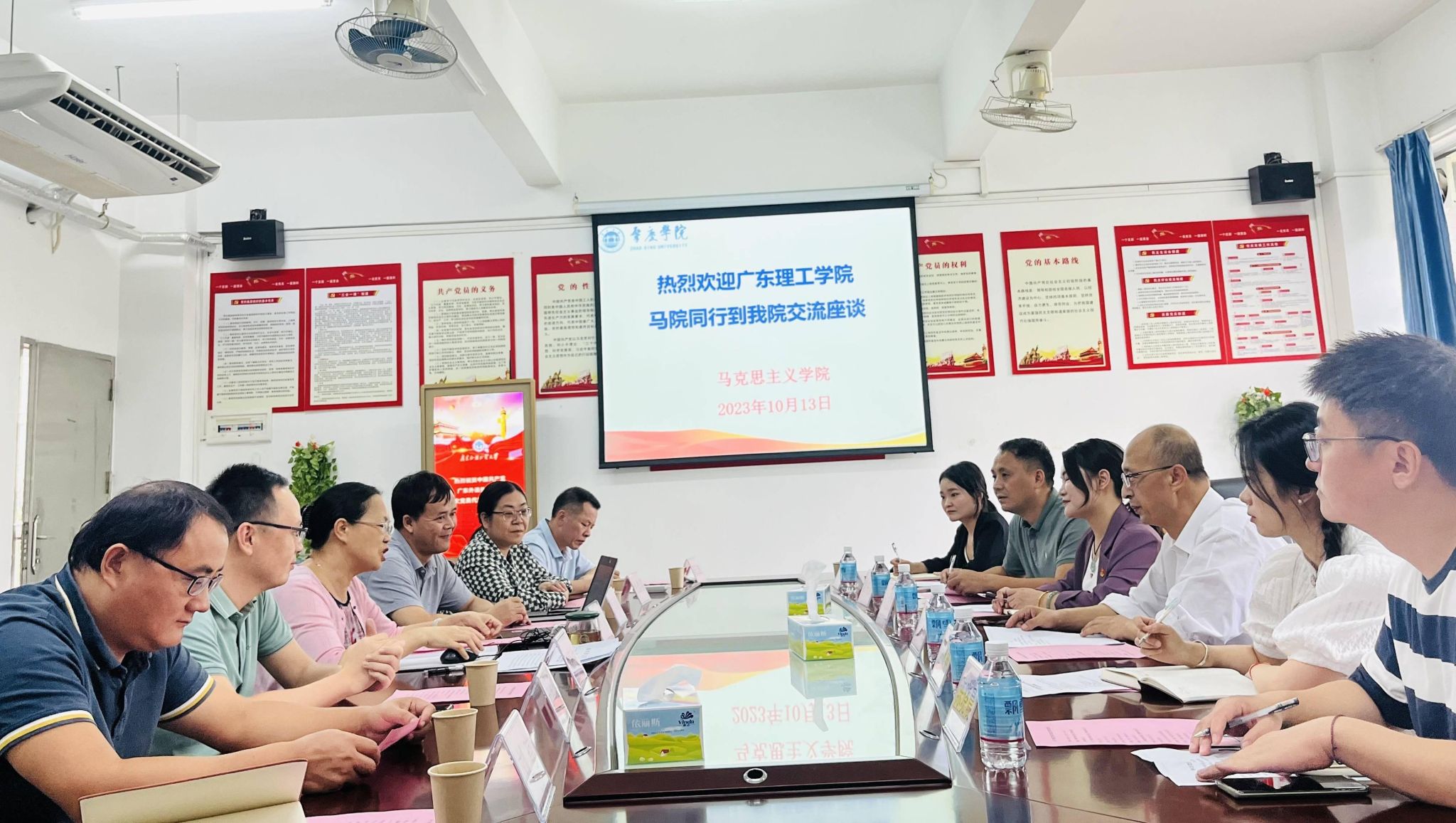 2023年10月13日下午,院长赵宇宏、总支书记何志红、副院长曾中新等一行6人赴肇庆学院太阳集团tyc138学习交流,此行受到肇庆学院太阳集团tyc138院长曹顺霞和副院长曹和修的热情接待。