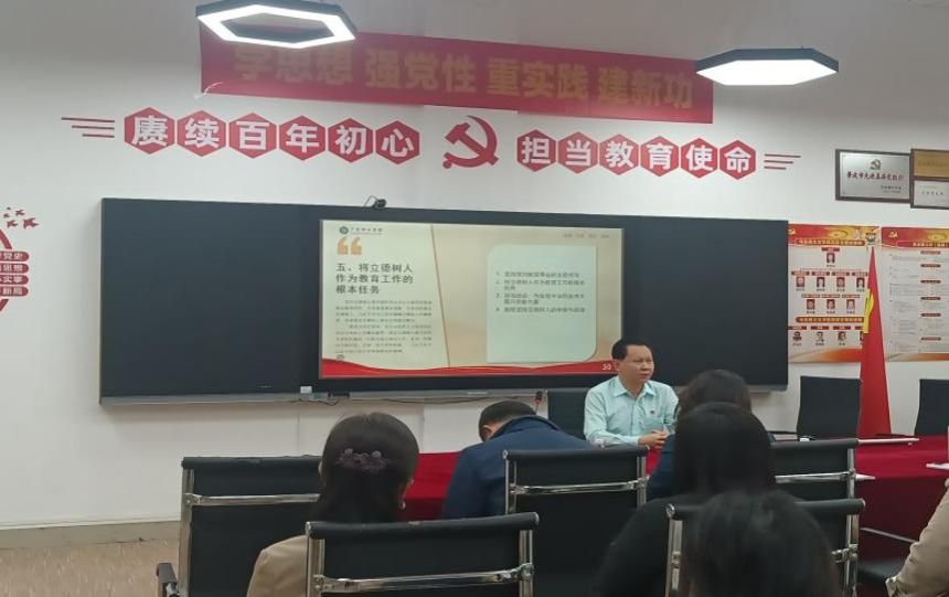 张东生书记以“何谓教育强国?”揭开此次党课序幕。他指出,建设教育强国是中华民族伟大复兴的基础工程,必须把教育事业放在优先位置,深化教育改革,加快教育现代化,办好人民满意的教育。在会上,张书记带领马院教工第一党支部的党员同志跟随习近平总书记的大学校园足迹,了解中国科学院大学、国防科技大学、北京大学、暨南大学等各大高校为贯彻“为党育人、为国育才”的总体要求、全面贯彻党的教育方针所取得的一系列成果,并进一步强调我校要深刻把握“八个相统一”,从坚持党的全面领导、培养高素质的思政课教师队伍以及推动思政课改革创新等几个方面继续扎实推进思政课建设,全面贯彻党的教育方针,为建设社会主义现代化强国、实现中华民族伟大复兴提供强大保障。