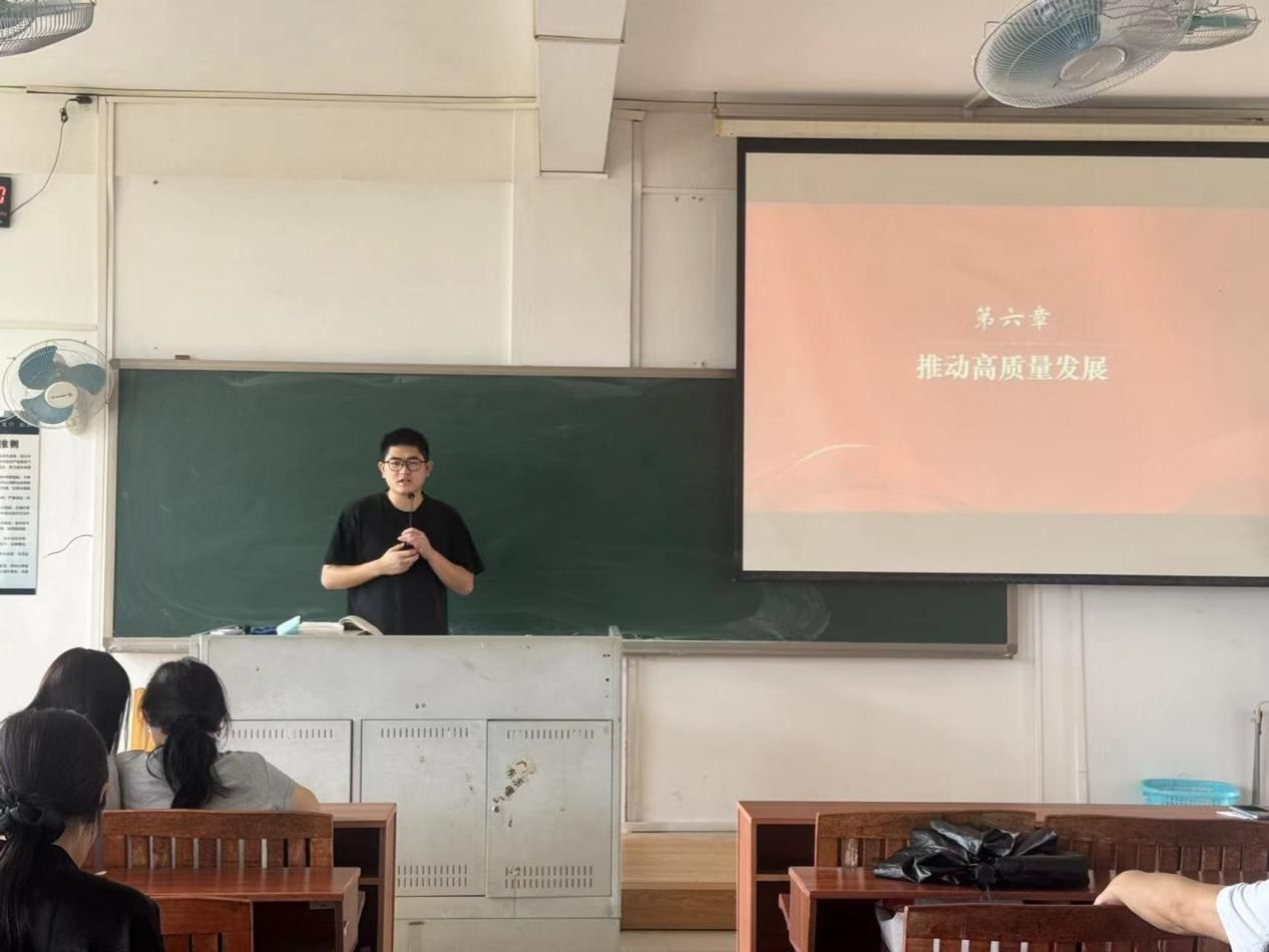 活动中新教师们紧扣学科核心素养,巧妙运用多媒体资源与互动环节。如贾慧敏老师通过短视频展示展示中国式现代化区别于西方现代化的显著标志,帮助学生更好理解中国式现代化的深刻内涵。叶运泽老师以经济发展阶段变化作为切入点,结合相关数据实例重点讲解新发展理念的内涵。陈茜老师以生活案例为课程导入,使学生理解建设社会主义生态文明的必要性,更好激发学生探究兴趣。课后,教研组组织评课研讨,资深教师从教学目标、课堂组织等维度提出针对性建议,新教师纷纷表示获益匪浅。