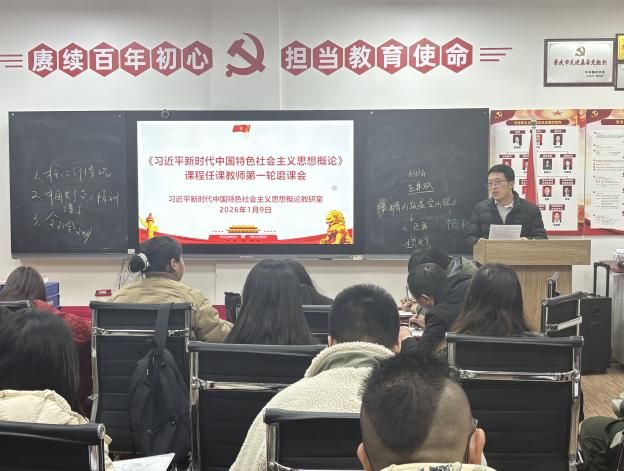 为了进一步提升《习近平新时代中国特色社会主义思想概论》课程任课教师的教育教学能力与课堂教学质量,切实打造一支“政治强、情怀深、思维新、视野广、自律严、人格正”的任课教师队伍,2026年1月7日和9日,习近平新时代中国特色社会主义思想概论教研室组织18位教师开展了为期两天的“磨课”活动,课程组全体教师参加了活动,活动由教研室主任庞明明主持。