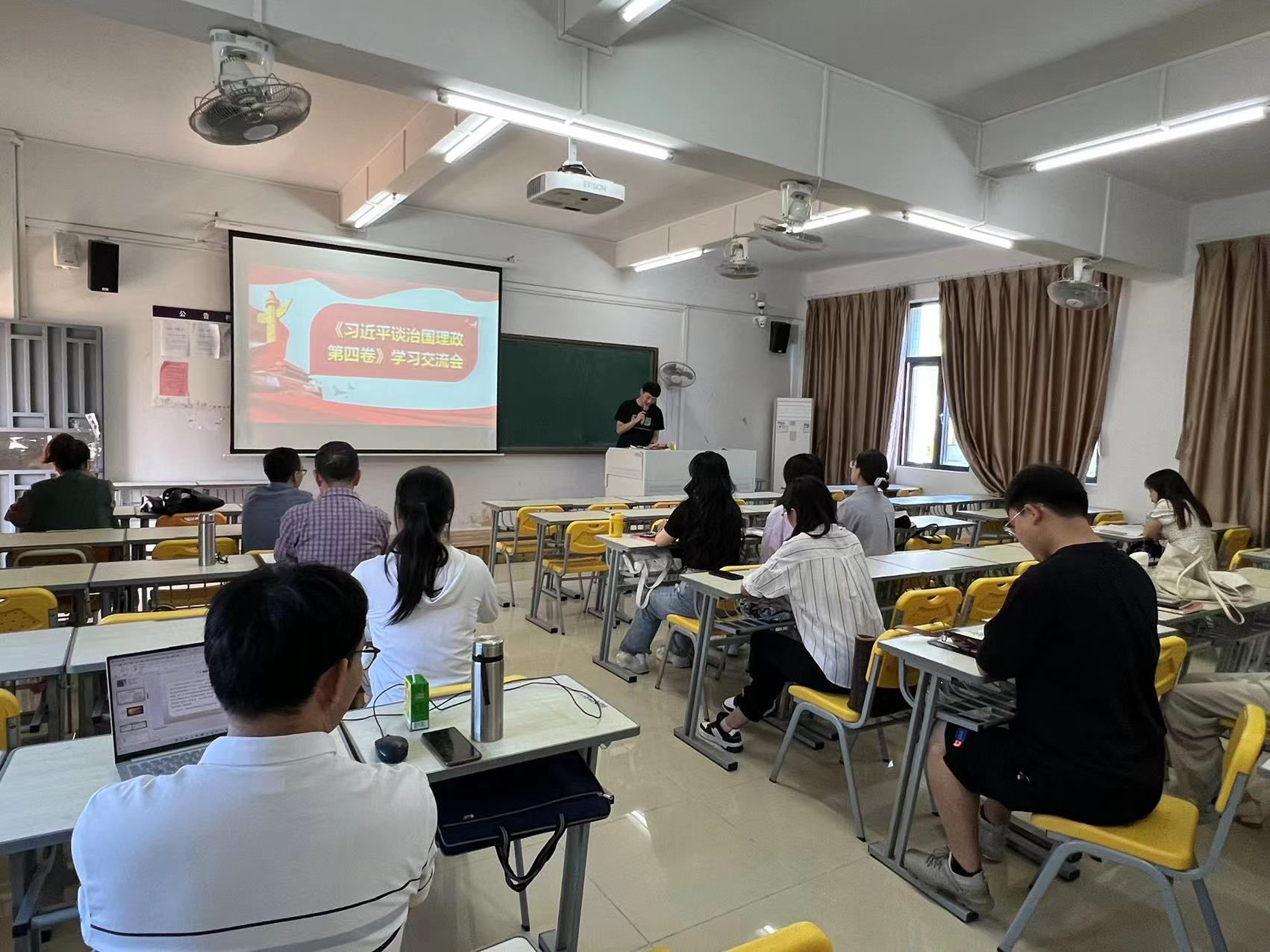 10月11日下午,太阳集团tyc138党支部在鼎湖校区召开《习近平谈治国理政》第四卷理论学习会,会议由叶瑞庭老师主持,杨迎春教授受邀出席,鼎湖校区教师参加。