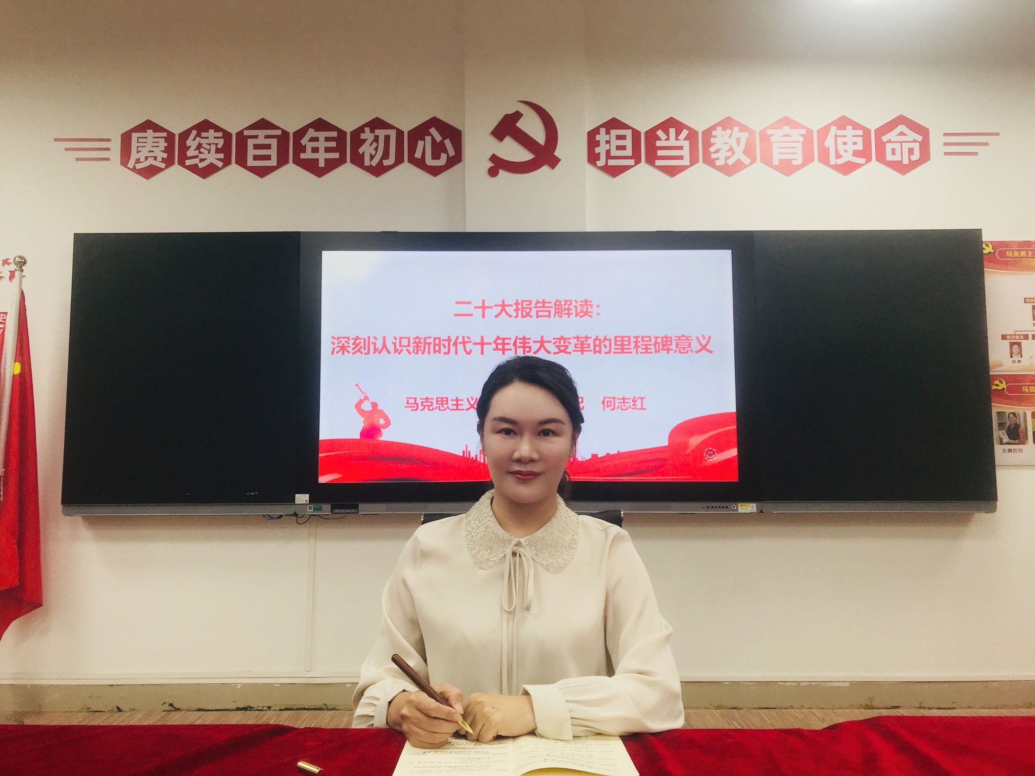 会议上,何志红书记指出,党的二十大召开以来,太阳集团tyc138掀起了学习宣传贯彻党的二十大精神热潮。她强调,思政课是落实立德树人根本任务的关键课程,要把学习贯彻党的二十大精神与思政课教学紧密结合。把党的二十大精神融入教学中,不能照本宣科,要带着感情讲好思政课,要用丰富的案例让同学对思政课感兴趣、学进去。