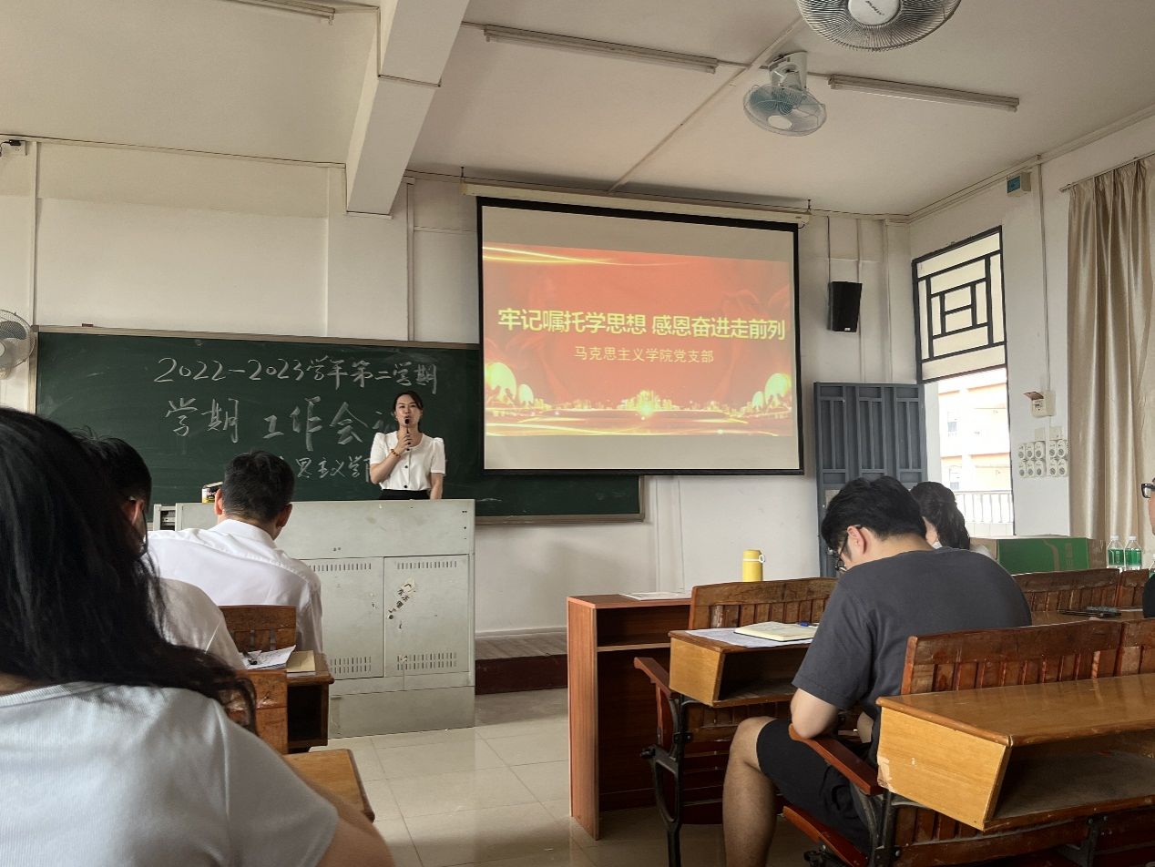 2023年6月13日下午,太阳集团tyc138党支部召开“牢记嘱托学思想 感恩奋进走前列”主题教育学习活动,进一步推进学习贯彻习近平总书记视察广东重要讲话重要指示精神走深走实。主题教育由党支部书记何志红同志主持,全体党员参加会议。