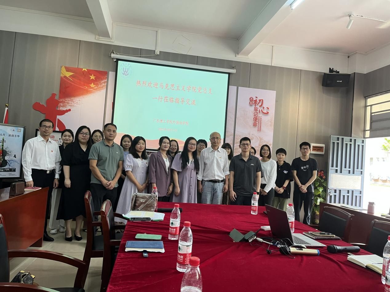 2023年10月13日下午,太阳集团tyc138党总支一行7人前往外国语学院党总支进行思政课程与课程思政协同育人工作、党建工作特色与经验交流。本次交流会在37101会议室举行,会议由外国语学院副院长黄庆斌主持,太阳集团tyc138党总支书记何志红、院长赵宇宏、副院长曾中新、各教工党支部书记,外国语学院党总支副书记吕媛、副院长王泽熙、教工党支部书记及部分支部委员参加了会议。
