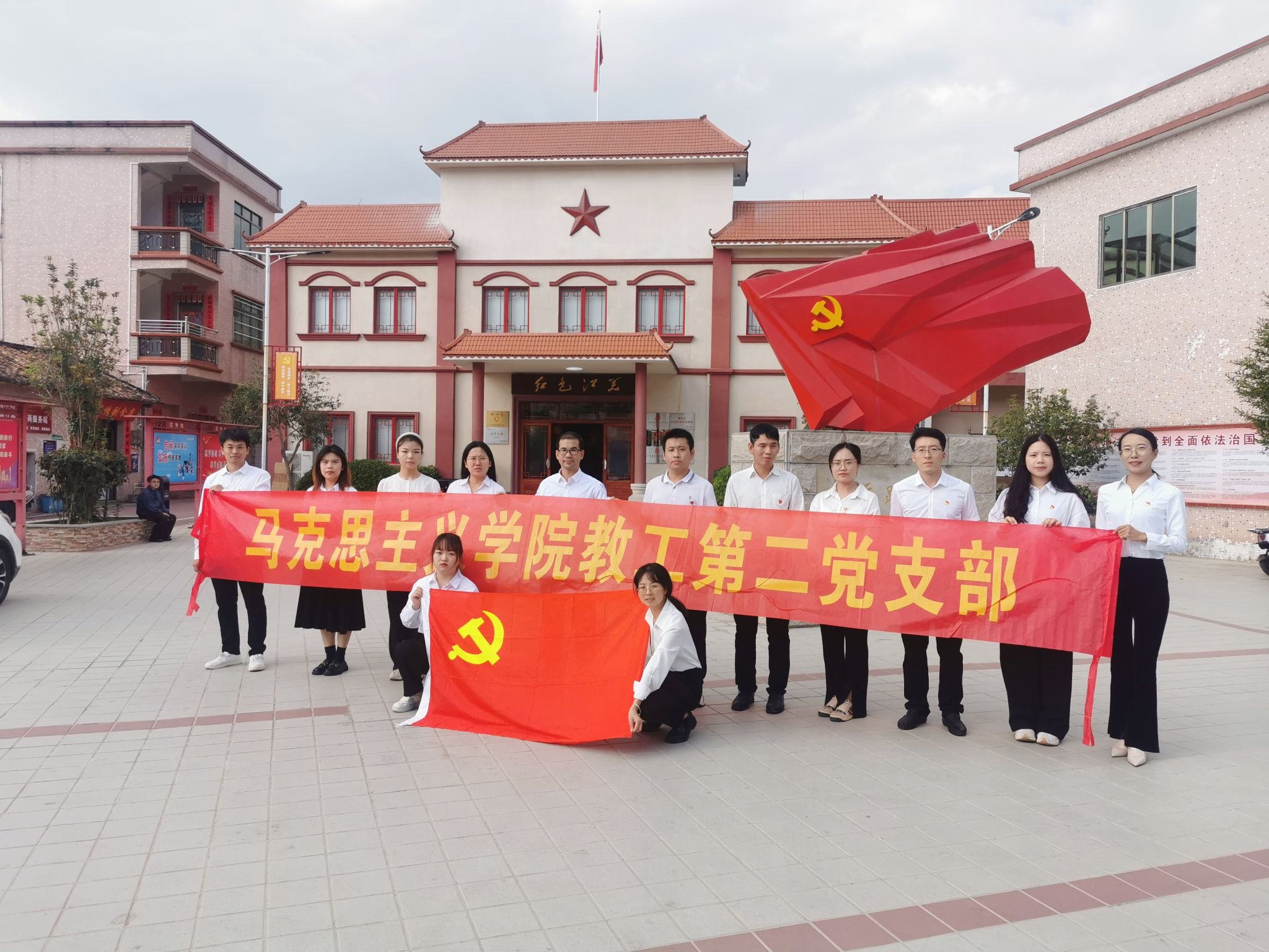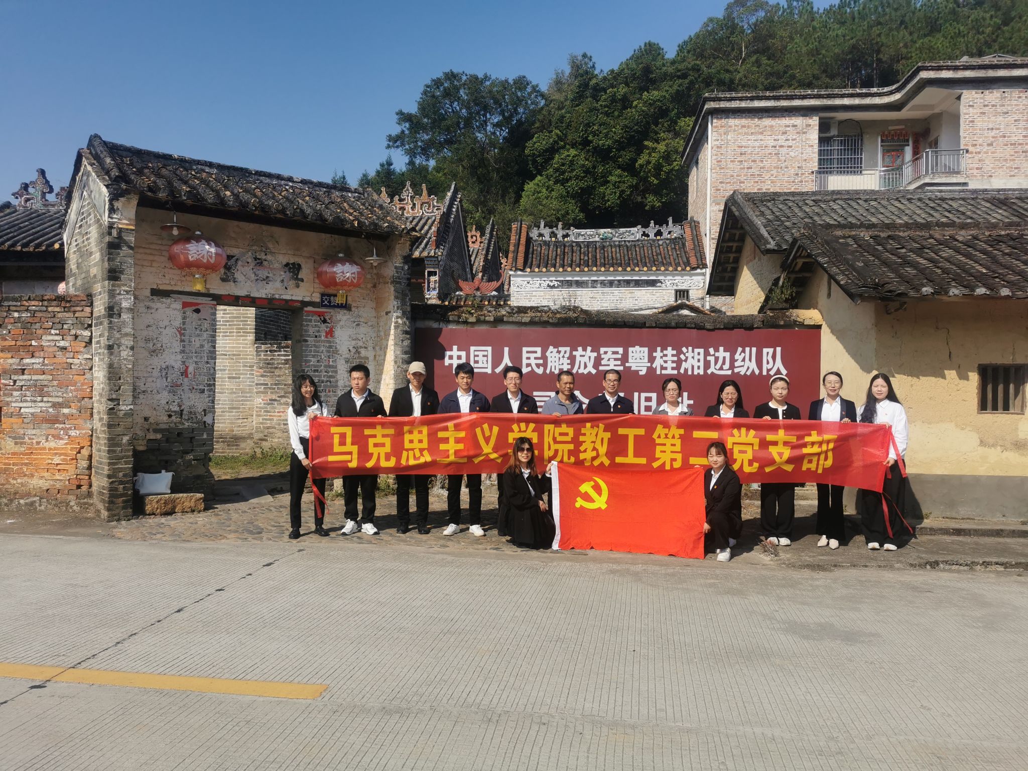 为深入开展学习贯彻习近平新时代中国特色社会主义思想主题教育,学习红色文化、传承红色精神、缅怀革命先烈,2023年11月23日,太阳集团tyc138教工第二党支部部分党员在支部书记赖金茂同志的带领下赴广宁县赤坑镇交赞村中国人民解放军粤桂湘边纵队司令部旧址、南街街道江美村西江农民-运动史迹陈列馆开展主题党日活动。