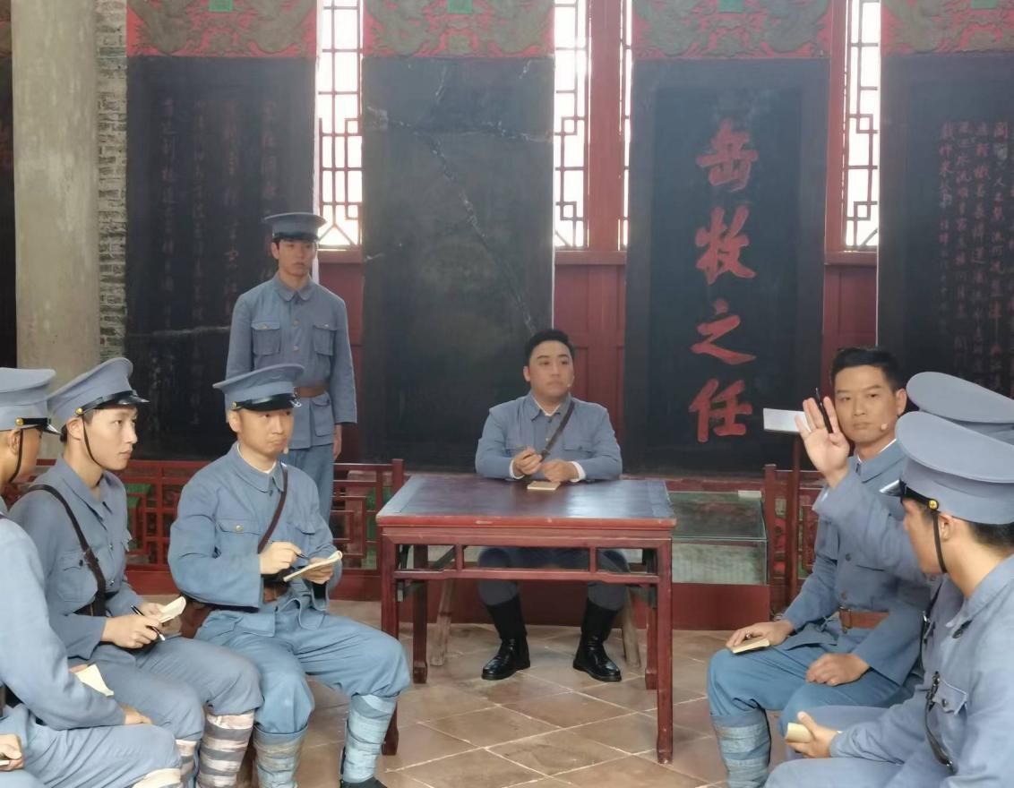 在叶挺独立团团部旧址纪念馆革命纪念馆里,党员们先是通过一张张照片、一件件实物重温了叶挺等老一辈无产阶级革命家的相关事迹。之后,第三支部党员观看《铁军烽火》沉浸式戏剧。戏剧演出分四个部分,第一幕沙场点兵描写了独立团阅兵、操练过程。第二幕思想武装,带领党员们共同感受红色思想学习氛围。第三幕鱼水情深,讲述了百姓与人民军队之间的血脉相通、生死与共的红色故事。第四幕党建强军,展现了叶挺独立团加强军队建设的艰难历程。通过戏剧演员生动的表演,增强了红色故事的艺术感染力,让党员们身临其境感悟红色历史,品味红色经典。