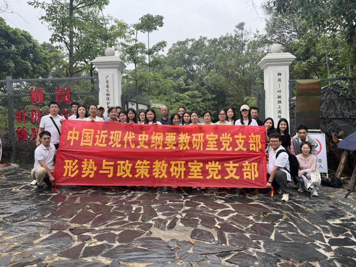 为深入贯彻落实总体国家安全观,提高师生国家安全意识和素养,传承和弘扬革命精神,加强党纪学习教育,中国近现代史纲要教研室党支部和形势与政策教研室党支部于2024年5月18日,在党支部书记赵宇宏、曾中新的带领下,赴谭平山故居和肇庆市狮岗叶挺独立团练兵遗址开展了一场别开生面的主题教育。