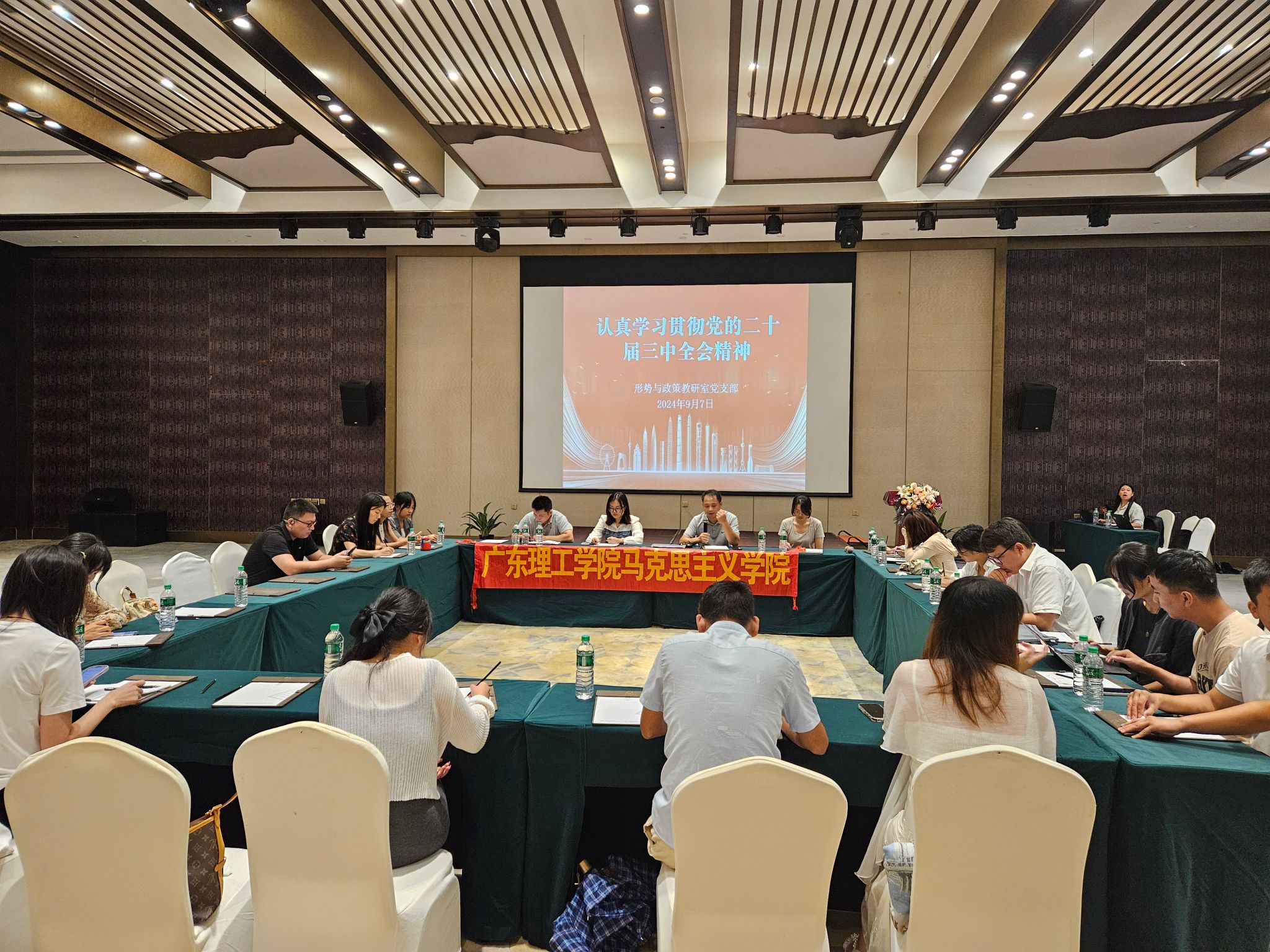 党的二十届三中全会是在以中国式现代化全面推进强国建设、民族复兴伟业的关键时期召开的一次十分重要的会议,全会审议通过的《中共中央关于进一步全面深化改革、推进中国式现代化的决定》,为国家的发展擘画了宏伟蓝图。形势与政策党支部积极响应号召,于9月7日举办了一场深入学习贯彻全会精神的研讨活动,此次活动旨在深入领会全会精神,将党的最新决策部署转化为推动地区发展和教育教学工作的强大动力。