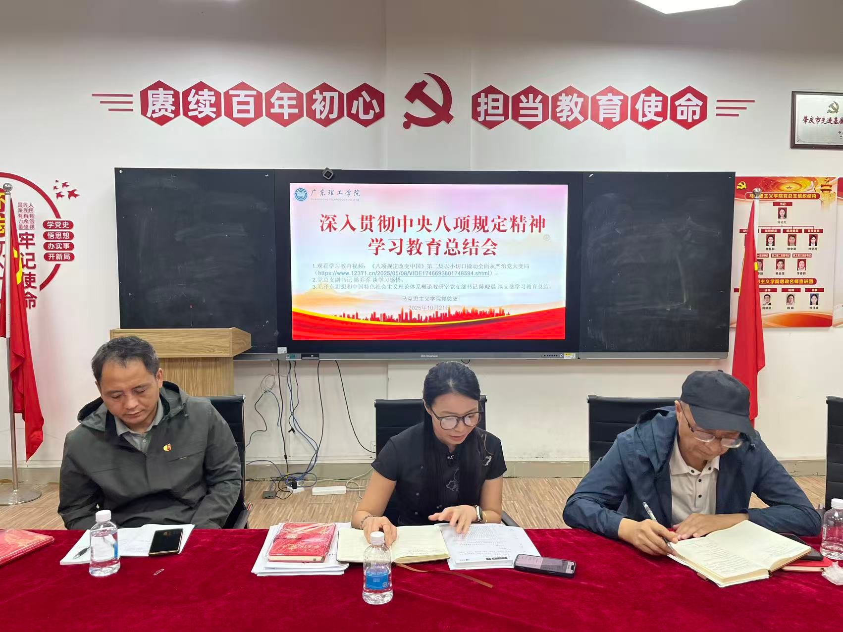 学习视频结束后,党总支副书记姚乔乔结合自身学习体会作了交流发言。她指出,中央八项规定既是作风建设的“破题之举”,也是全面从严治党的制度标杆。作为思政课教师,更应在贯彻落实中央八项规定精神上走在前、作表率,把党的创新理论和优良作风有机融入课堂教学全过程,以严谨的学风、清廉的教风和端正的师风引导学生,做到“言为士则、行为世范”,让八项规定精神在思政课堂中真学、真信、真行。