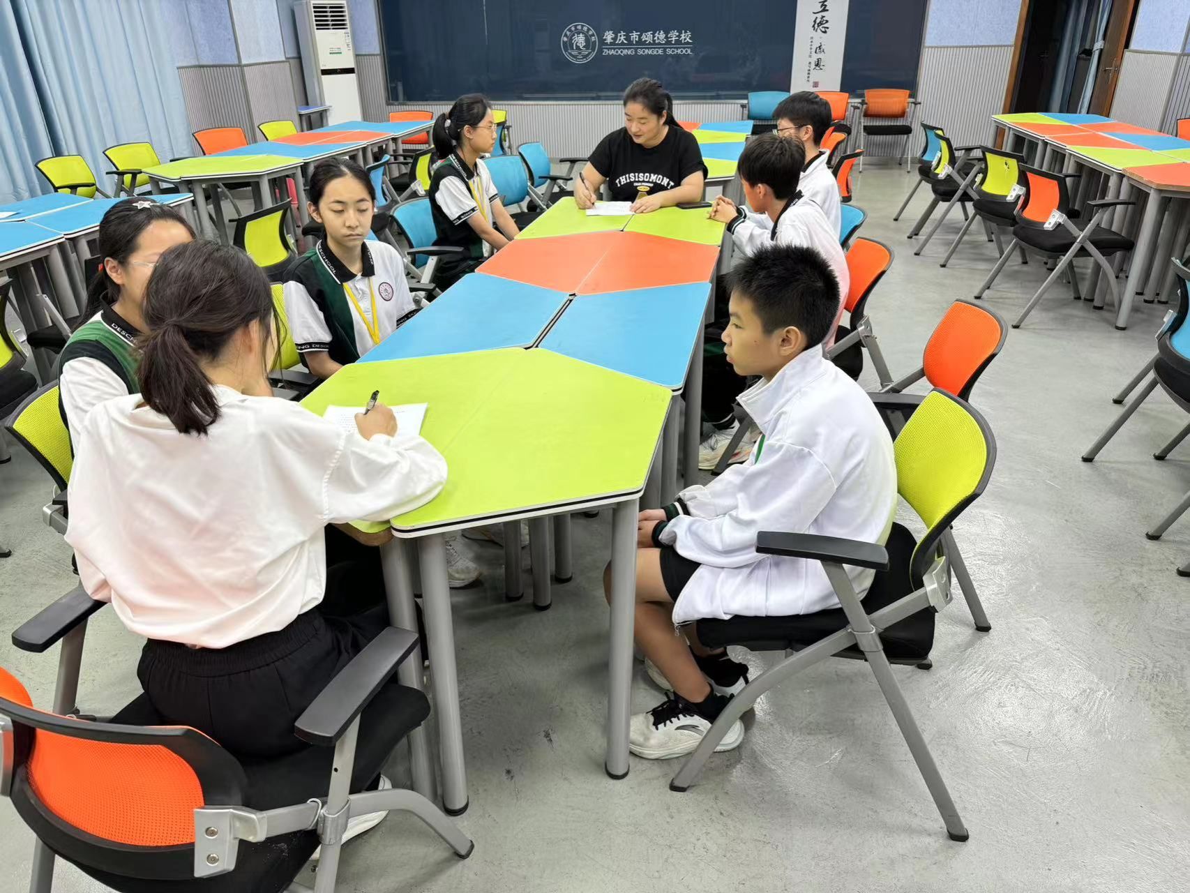 座谈会上,颂德中学领导、思政课教师就初中学段思政课教学过程中取得的成绩、存在的问题与面临的困难进行了汇报。双方就不同学段间思政课教学内容与链接进行了深入交流。两位小组成员对各年级学生代表进行了访谈。