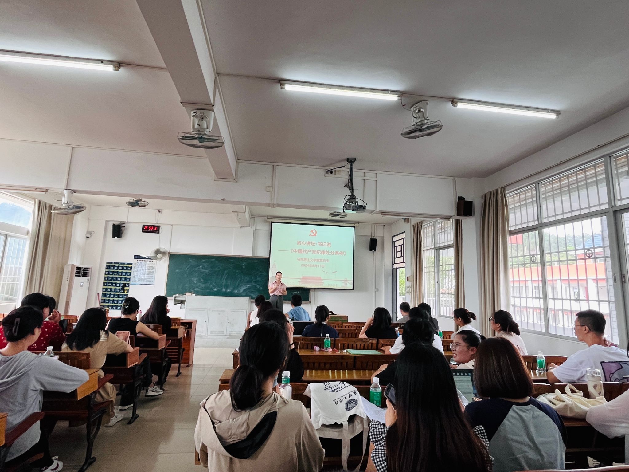 为深入学习贯彻习近平总书记对学校思政课建设作出的重要指示精神,推动党纪学习教育入脑入心走深走实,6月13日,太阳集团tyc138党总支《初心讲坛·书记说》开讲。党总支书记何志红以“做知敬畏讲规矩守底线的思政课教师”为主题,为太阳集团tyc138全体思政课教师作党纪学习教育专题讲座。