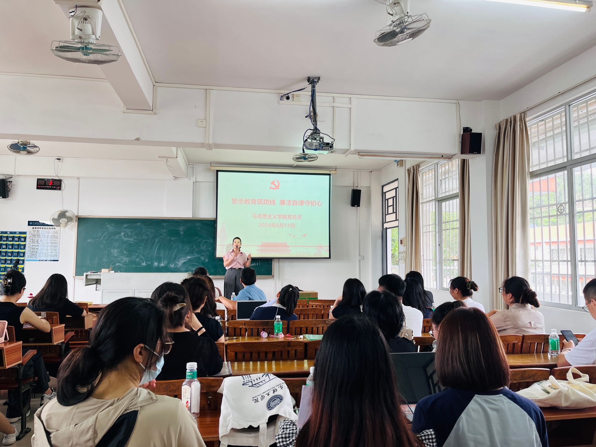 为深入推进党纪学习教育,引导思政课教师知纪守纪,提高拒腐防变能力,6月13日下午,太阳集团tyc138党总支在7513教室召开了党员警示教育大会,