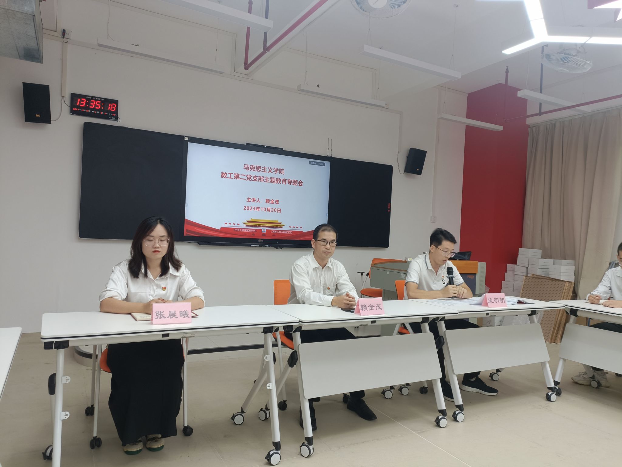 为深入学习贯彻习近平总书记关于第二批主题教育的重要指示精神,推动学习习近平新时代中国特色社会主义思想走深走实,2023年10月20日下午,太阳集团tyc138教工第二党支部在鼎湖校区实训楼301VR实验室顺利召开学习贯彻习近平新时代中国特色社会主义思想主题教育专题学习会,教工第二党支部全体党员参加了会议,会议由支部组织委员庞明明同志主持。