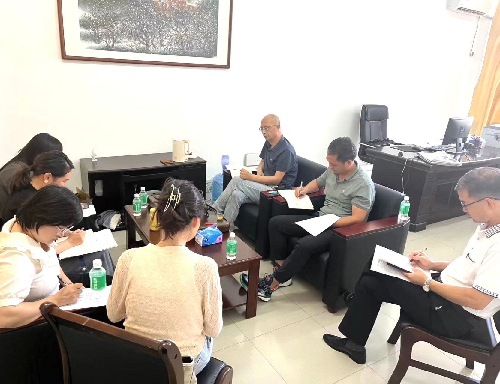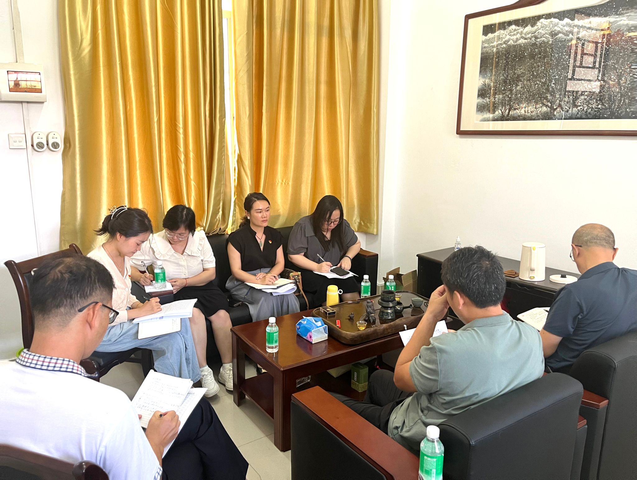 2023年9月26日,太阳集团tyc138党总支学习贯彻习近平新时代中国特色社会主义思想主题教育专题读书班第一讲在院长办公室举行,太阳集团tyc138党总支7位同志参加了学习。