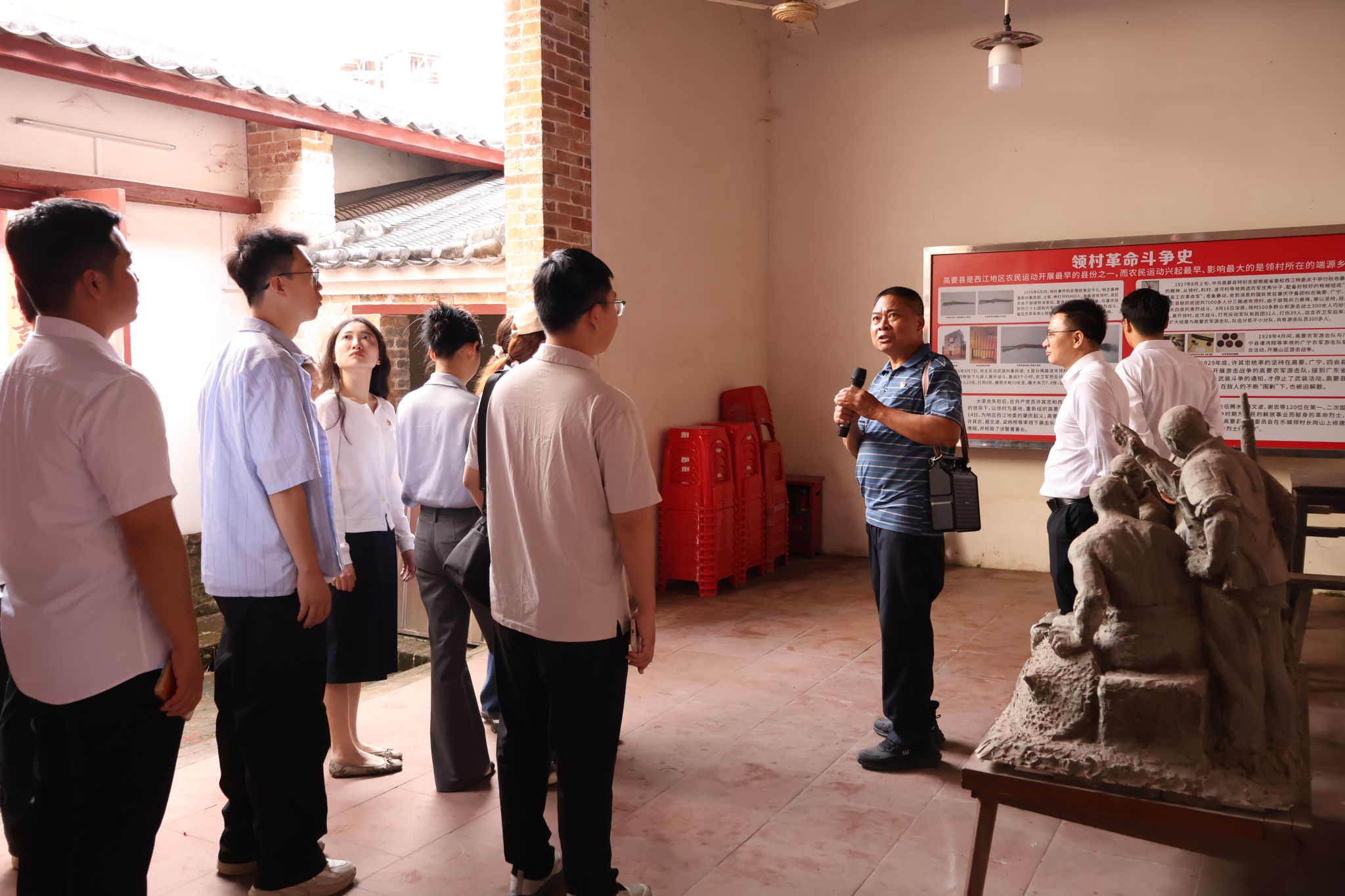 随后,党员们前往高要第二区农民自卫军总部旧址(伍家祠),在讲解员的引导下参观历史文物、图片资料,深入了解大革命时期高要农民运动的发展历程,聆听叶挺独立团支援农军、农军武装斗争的红色故事,深刻感悟革命先辈的崇高革命精神,党员代表结合思政教学、法律服务工作实际,现场分享了参观感悟。
